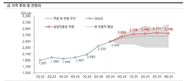 - NH투자증권: 2025년 평균 금값을 온스당 2,900달러로 전망하며, 경제 불확실성이 금 가격에 긍정적인 영향을 미칠 것으로 분석합니다.